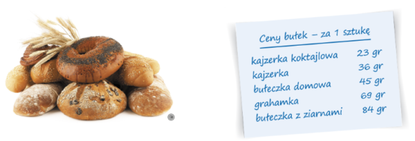 Paweł ma 5 zł i chce kupić 8 bułek tego samego rodzaju. Na które bułki Pawłowi zabraknie pieniędzy?