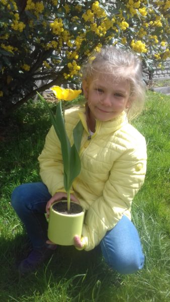 Brawo Kamilko. Twój samodzielnie przesadzony tulipanek rośnie pięknie.