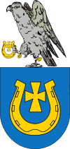 Herbem Gminy jest podkowa złota ocelami do góry, w niej krzyż kawalerski złoty, umieszczony w błękitnym polu tarczy. Pośrodku górnej krawędzi tarczy umieszczony wizerunek jastrzębia z złotymi dzwonkami u nóg, trzymającego w łapie taką samą podkowę z krzyżem jak na tarczy.
