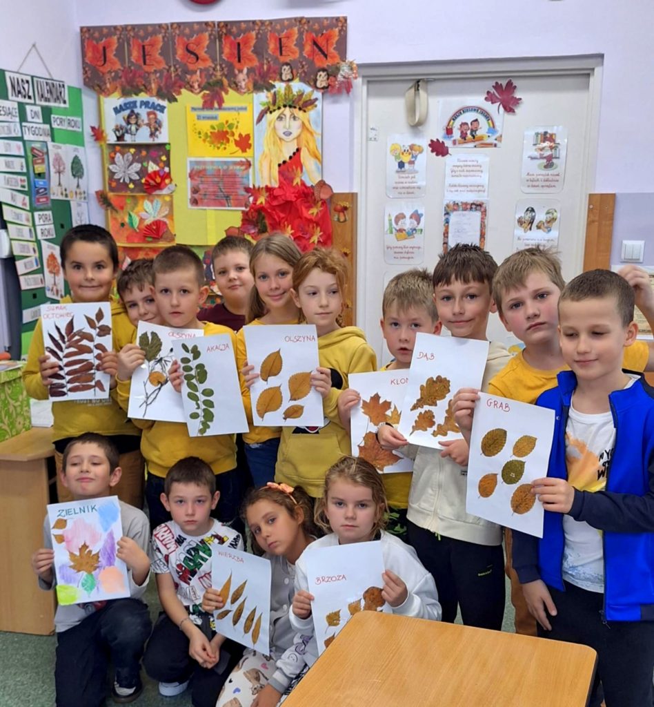 Zgodnie z harmonogramem innowacji pedagogicznej ,,Teczkownik – cztery pory roku”, klasy II wykonały wspólnie zielnik. Liście, które zostały w nim umieszczone – uczniowie zebrali wcześniej, podczas jednego z jesiennego spaceru. Zbieranie liści było świetną zabawą, tworzenie wspólnego zielnika sprawiło dzieciom wiele radości. Przy okazji można było nauczyć się rozpoznawać gatunki drzew oraz utrwalić wygląd rosnących na nich liści.