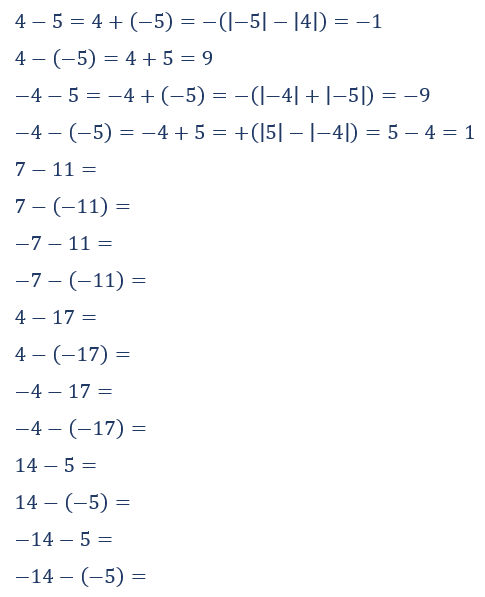Oblicz wg wzoru (najpierw zamień odejmowanie na dodawanie):