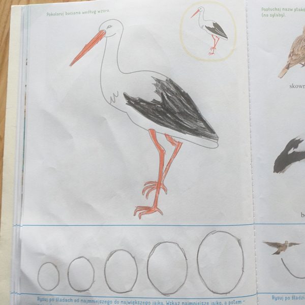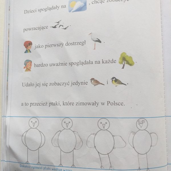 • Karta pracy , nr 28. Dzieci: kończą rysować ptaki według wzoru