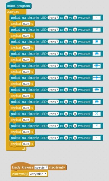 Program dzięki któremu robot wyświetla sekwencję znaków na wyświetlaczu LED