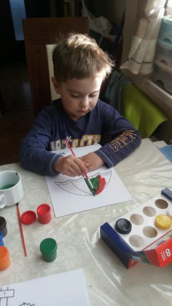 Opowiada o wodzie. Dzieci rysują palcem na plecach siedzącego przed nimi dziecka ( lub innego członka rodziny) według polecenia R.: kropki, kreski i linie, stukają opuszkami palców itp. Na koniec naśladują