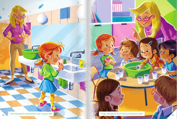 – Skończyłam! – zawołała po pewnym czasie Ada. Pani natychmiast zakręciła kran i zaniosła miskę z wodą do sali. Wszystkim dzieciom rozdała jednorazowe kubeczki. – A teraz kolejno