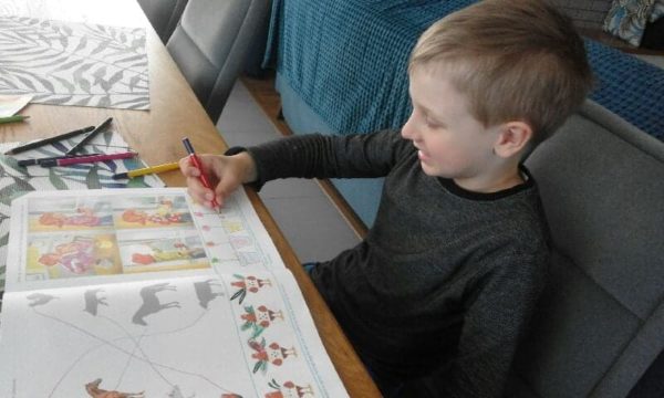Opowiada o wodzie. Dzieci rysują palcem na plecach siedzącego przed nimi dziecka ( lub innego członka rodziny) według polecenia R.: kropki, kreski i linie, stukają opuszkami palców itp. Na koniec naśladują
