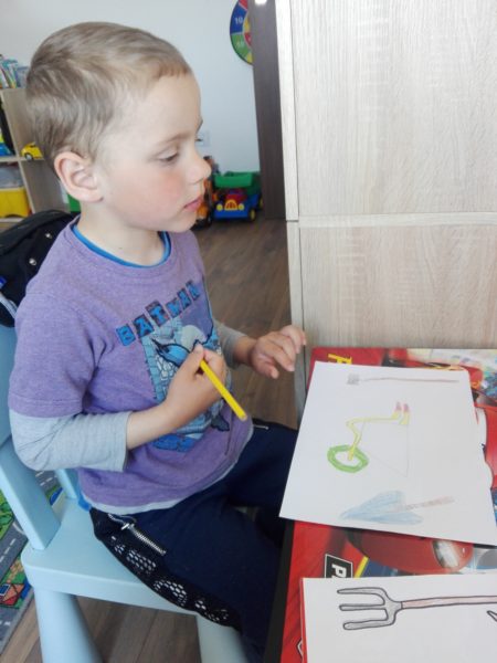 R. prosi, aby dzieci przypomniały sobie, jak wyglądała łąka, którą widziały na wycieczce. Dzieci