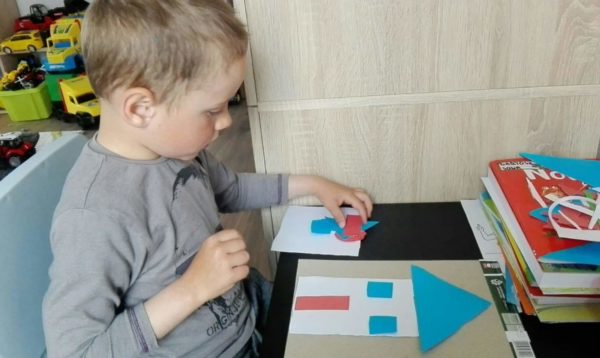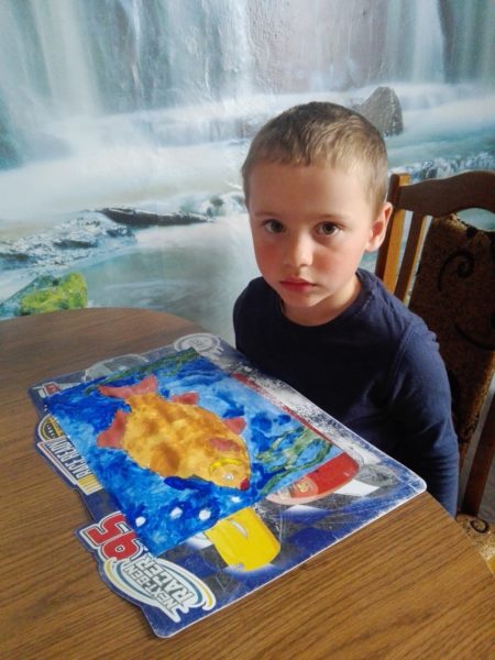 Dla dziecka biała kartka z bloku technicznego, płynny klej, pędzelek, farby plakatowe (jeśli są gęste, dobrze je rozcieńczyć wodą).