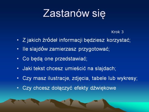 Poniżej umieszczam najważniejsze kroki którymi trzeba się kierować wykonując prezentację. Bardzo proszę się z nimi zapoznać