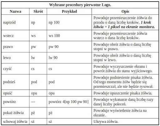 - Zapoznanie się z podstawowymi poleceniami języka Logo