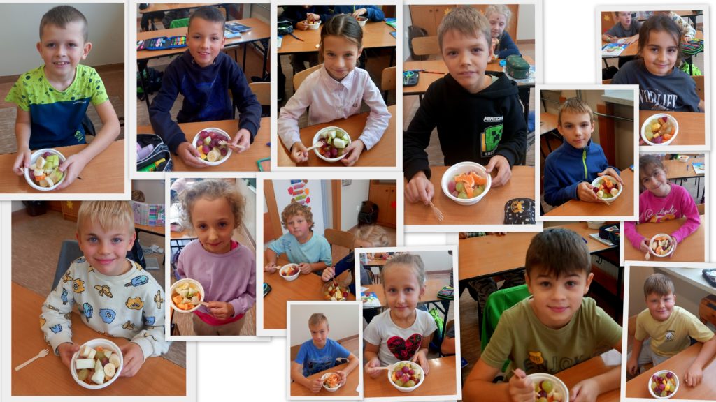 Kolejnym zadaniem, które udało się wykonać w ramach prowadzonej innowacji ,,Teczkownik – cztery pory roku”, było wspólne przygotowanie z przyniesionych przez dzieci owoców – sałatki owocowej. Uczniowie z niecierpliwością czekali na moment jedzenia wspólnie przygotowanej, zdrowej przekąski. Sałatka owocowa cieszyła się dużym powodzeniem. Przy okazji przeprowadzono