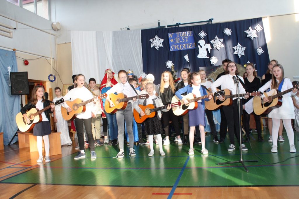 Tradycyjnie już, jak co roku, tuż przed świętami Bożego Narodzenia, 20 grudnia w naszej szkole odbyły się Jasełka. W rolę aktorów odtwarzających historię sprzed ponad dwóch tysięcy lat wcielili się uczniowie . W tym roku towarzyszyło nam przesłanie „W Tobie jest światło”. Wzruszający scenariusz ilustrował emocje zagubionych, młodych ludzi, często samotnych. Ludzi zmagających się z problemem wiary, poszukujących prawdy i osobistej relacji z Bogiem. Fabuła zbudowana była m.in. wokół pieśni „W Tobie jest światło”. Historia wpisana była w dzieło Nowej Ewangelizacji, która prowadzi od zimnej ulicznej ławki, do gorącej, betlejemskiej stajenki.Bardzo wymownym i wzruszającym akcentem była historia chłopca chorego na białaczkę , który leżąc w szpitalu przewartościował swoje życie, uwierzył w Chrystusa. Podzielił się tym doznaniem ze znajomymi, którzy początkowo nie mogli w taką zmianę uwierzyć .Dla tych młodych Boże Narodzenie było momentem przełomowym, cierpienie kolegi pozwoliło im się zatrzymać i dostrzec to czego nie dostrzegali do tej pory. W historię chorego chłopca wplecione zostały wydarzenia sprzed ponad dwóch tysięcy lat związane z narodzeniem Syna Bożego. Końcową refleksją inscenizacji była bardzo wymowna i wzruszająca prawda o tym ,że Chrystus może się narodzić na nowo w każdym z nas. Piękne kolędy zaśpiewali dla nas uczniowie klas starszych ale też młodsi wykonawcy. Nowością były kolędy w wykonaniu grupy uczniów grających na gitarach. Przedstawienie obejrzeli zaproszeni Goście, Grono Pedagogiczne oraz cała społeczność uczniowska. Aktorzy dali z siebie wszystko, a publiczność swym wzruszeniem i gromkimi oklaskami nagrodziła występujących.