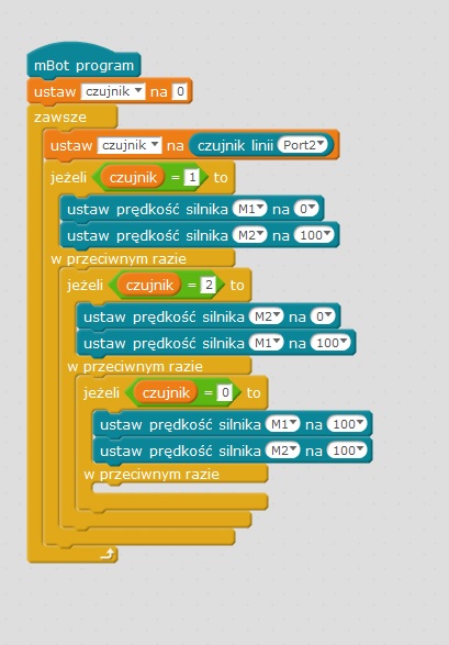Program dzięki któremu robot jeździ tylko po czarnej linii