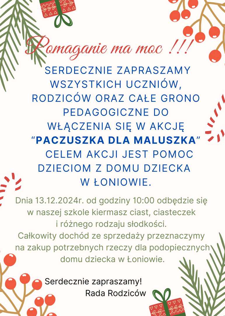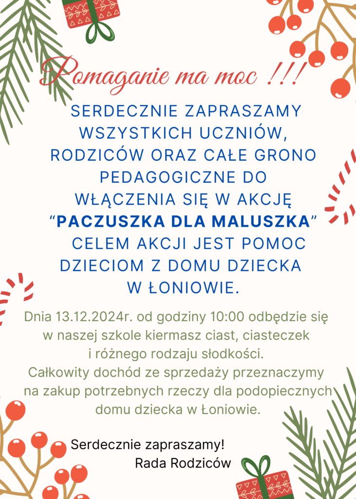 Zapraszamy na kiermasz ciast w ramach akcji “Paczuszka dla maluszka”