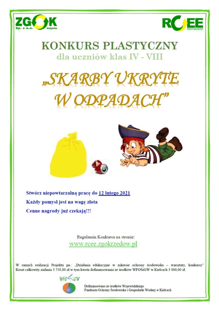 Zachęcamy uczniów do udziału w konkursie plastycznym dla uczniów klas IV-VIII “Skarby ukryte w odpadach”