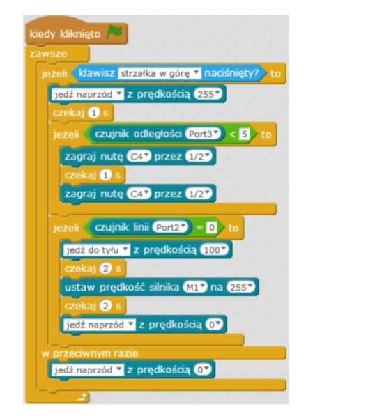 Jeśli robot dojedzie do krawędzi (lub czarnej linii), samodzielnie zawróci.