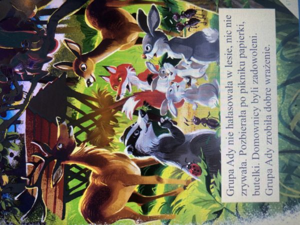 Tego dnia dzieci wróciły z wycieczki bardzo zadowolone. Nauczycielka pochwaliła wszystkie za to, że w lesie zachowywały się tak, jak należy: nie hałasowały, nie niszczyły mrowisk i norek, nie zrywały żadnych roślin bez zgody pani i pięknie posprzątały po zakończonym pikniku.