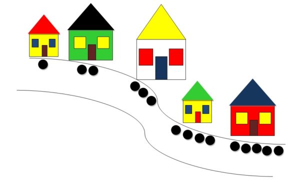 Zabawa „Numerujemy domy” – rozwijanie umiejętności liczenia z zastosowaniem liczebników porządkowych.