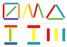 Dziecko układa z patyczków trójkąt, prostokąt, kwadrat. Określa, ile patyczków potrzebowało do ułożenia kształtu każdej figury.