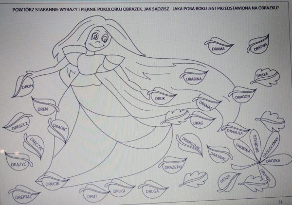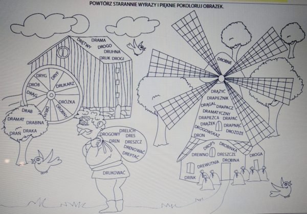 Logopeda SP 20 maja 2020 Marta Jezierska-Lis Klasa Va, Zdalne nauczanie Dzień dobry dziś poćwiczymy nie tylko mowę ale i sprawność rąk i palców. Zadanie polega na dokładnym powtórzeniu wyrazów i pokolorowaniu logopedycznego rysunku. W celu pobrania obrazka kliknij na niego prawym kursorem myszy i zapisz jako. Powodzenia