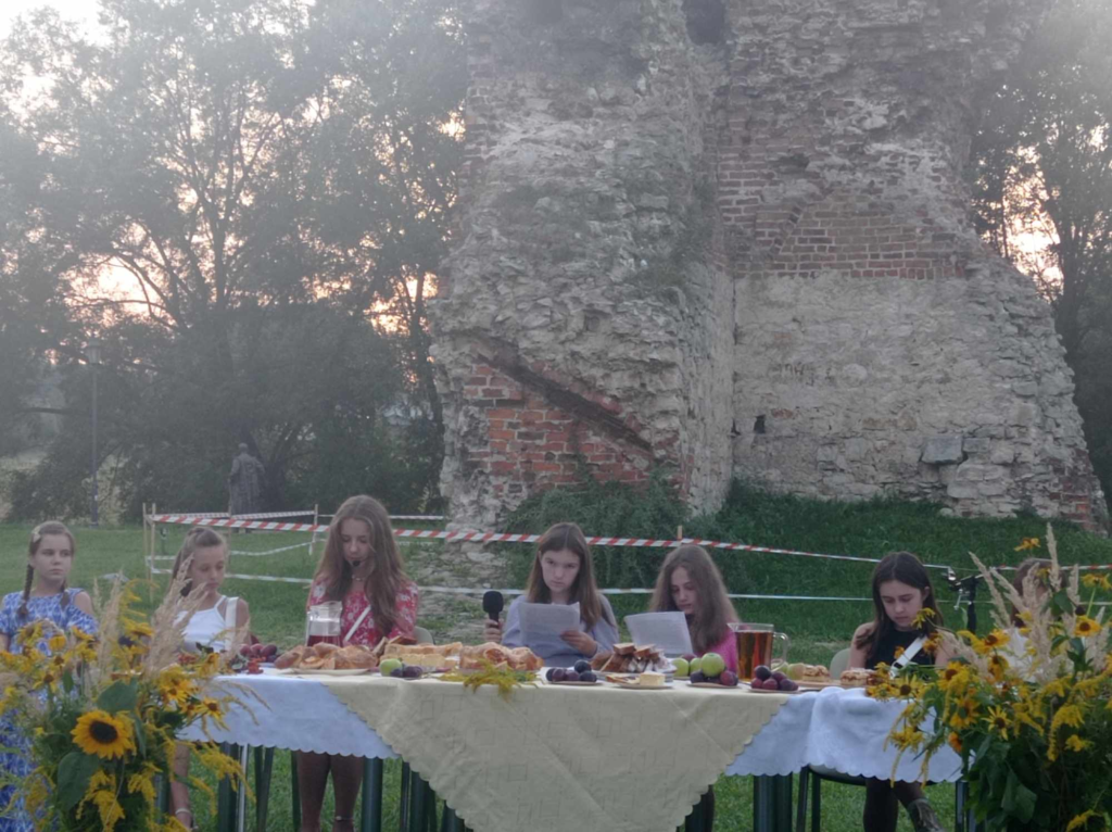 W spotkaniu dnia 09.09.2023 r. w pięknej scenerii, przy ruinach zamku   w Rytwianach, naszą szkołę reprezentowały uczennice z klasy V a: Natasza Janowska, Dominika Walczyk, Maja Krala, Alicja Woś, Wiktoria Kałamaga, Milena Magdziarz, Martyna Suchojad oraz uczniowie z kl. VII a: Piotr Bała  i Hubert Kruk, którzy w przepiękny sposób przeczytali fragment powieści „Nad Niemnem”. Czytający zasiedli przy staropolskim stole przygotowanym przez organizatora – Gminną Bibliotekę Publiczną w Rytwianach. To była prawdziwa uczta duchowa.