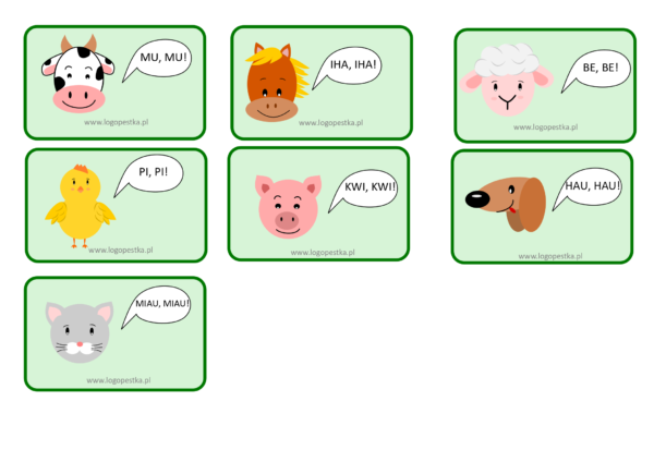 Dziś zajęcia zaczynamy od zabawy w naśladowanie odgłosów wydawanych przez wiejskie zwierzęta. Proszę Rodziców o wydrukowanie i wycięcie poniższych obrazków, które będą potrzebne do przeprowadzenia zabawy.