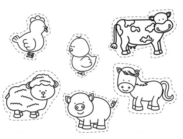 Posłuchajcie jak należy wykonać pracę. Najpierw musicie starannie pokolorować wszystkie obrazki. Następnie należy je wyciąć – jeśli macie z tym problem poproście rodziców o pomoc. Pokolorowane i wycięte elementy należy przykleić na kartkę z bloku, rozmieszczając je tak, aby stworzyły nam piękny obraz farmy. Na końcu możecie dorysować własne elementy: słońce, chmury, kwiaty, drzewa, trawę, niebo itd. Na pewno wasze prace będą piękne!