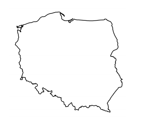 Przedszkolaki popatrzcie na przedstawiony poniżej kształt, coś Wam przypomina? Tak, to jest Polska. Czarnym kolorem zostały zaznaczone jej granice. Postarajcie się powoli przesunąć palec po linii zaznaczającej granice naszego kraju. Możecie spróbować samodzielnie narysować granice Polski na innej kartce i porównać z umieszczonym poniżej konturem.