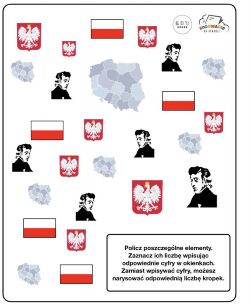 Jeszcze krótkie zadanko na spostrzegawczość. Policzcie proszę poszczególne elementy i zapiszcie liczbę w odpowiednim okienku.