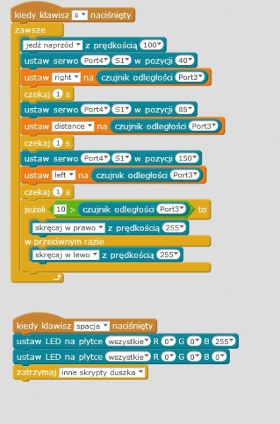 Program  dzięki któremu robot obraca w lewo i prawo czujnikiem odległości