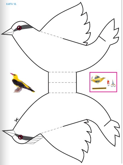 Zdjęcie wilgi. Dzieci oglądają zdjęcie, wskazują części ciała wilgi i je nazywają (skrzydła, dziób, kończyny zakończone szponami, pióra…). Podkreślają, że wilga jest ptakiem, bo ma wszystkie cechy ptasie. Przypominają (historyjka), że młode wykluwają się z jaj zniesionych w gnieździe.