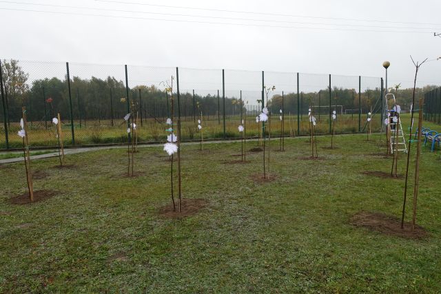 10 października przypada Światowy Dzień Drzewa. W tym dniu realizowaliśmy kolejne działanie z projektu Zielona dwudziestka w ramach Lokalnego Konkursu Grantowego Działaj Lokalnie2025, czyli stworzenie Zielonego Zakątka przy murach naszej szkoły. Uczniowie pod kierunkiem p. Małgorzaty Wójcickiej przygotowali montaż słowno- muzyczny o tematyce przyrodniczej, ze zwróceniem uwagi na treści ekologiczne i znaczenia drzew w życiu człowieka. Po audycji radiowej uczniowie poszczególnych klas i oddziałów przedszkolnych wyruszyli na boisko szkolne w kierunku wyznaczonego miejsca na Zielony Zakątek. Uczniowie wraz z opiekunami sadzili swoje drzewko, któremu nadawali imię i losowali złotą myśl. Zasadzono 20 klonów i w ten sposób powstanie w przyszłości zacienione, przyjazne miejsce, w którym będzie można miło, przyjemnie spędzać czas w gronie przyjaciół oraz całą klasą zdobywać wiedzę wśród otaczającej przyrody. Między klonami postawione zostały drewniane, małe ławeczki, które zostały nam podarowane przez sponsora, absolwenta naszej szkoły, Dawida Wnuka.