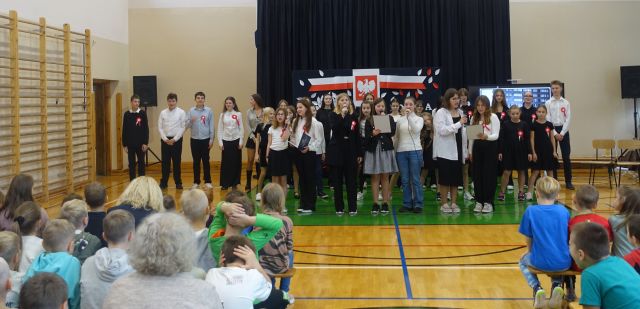 11 listopada to wyjątkowa data w historii naszego kraju- dzień, w którym Polska po 123 latach niewoli odzyskała niepodległość. Z tej okazji w naszej szkole odbyła się uroczysta akademia. Uczniowie pod kierunkiem Pani Doroty Chynek, Pani Agaty Godzwon, Pani Beaty Chodurek, Pani Barbara Dynak zaprezentowali montaż słowno- muzyczny , przypominając drogę Polski do niepodległości. Podczas występu nie zabrakło patriotycznych wierszy, pieśni oraz refleksji nad znaczeniem wolności i miłości do ojczyzny. Uroczystość wprowadziła wszystkich w podniosły nastrój i stała się piękną lekcją historii i patriotyzmu. Cześć i chwała bohaterom, których odwaga i poświęcenie stały się fundamentem naszej niepodległości.