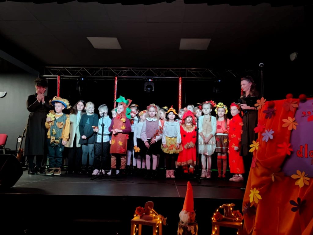 30 listopada 2024r. na scenie Gminnego Centrum Kultury wystąpili uczniowie klas I-III Zespołu Szkolno – Przedszkolnego w Rytwianach. Dzieci recytowały utwory o tematyce jesiennej, które wcześniej prezentowały na szkolnym konkursie recytatorskim pt. ,,Barwy jesieni w poezji dla dzieci”- który odbył się w ramach prowadzonej innowacji pedagogicznej pt. ,,Teczkownik – cztery pory roku”. Mali artyści pokazali niemały kunszt recytatorski, przez co każdy występ nagradzany był przez liczną publiczność gromkimi brawami. Popisy recytatorskie uzupełniły piosenki, także tematycznie związane z jesienią. Występ na tak dużej scenie był nagrodą za pracę, jaką uczniowie włożyli przygotowując się do konkursowej rywalizacji.