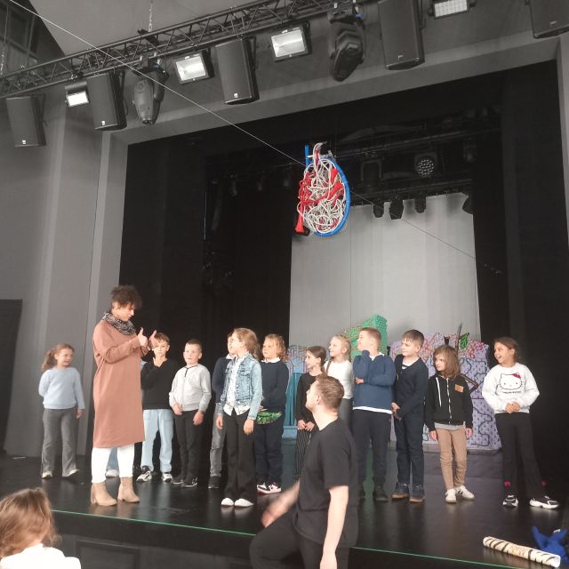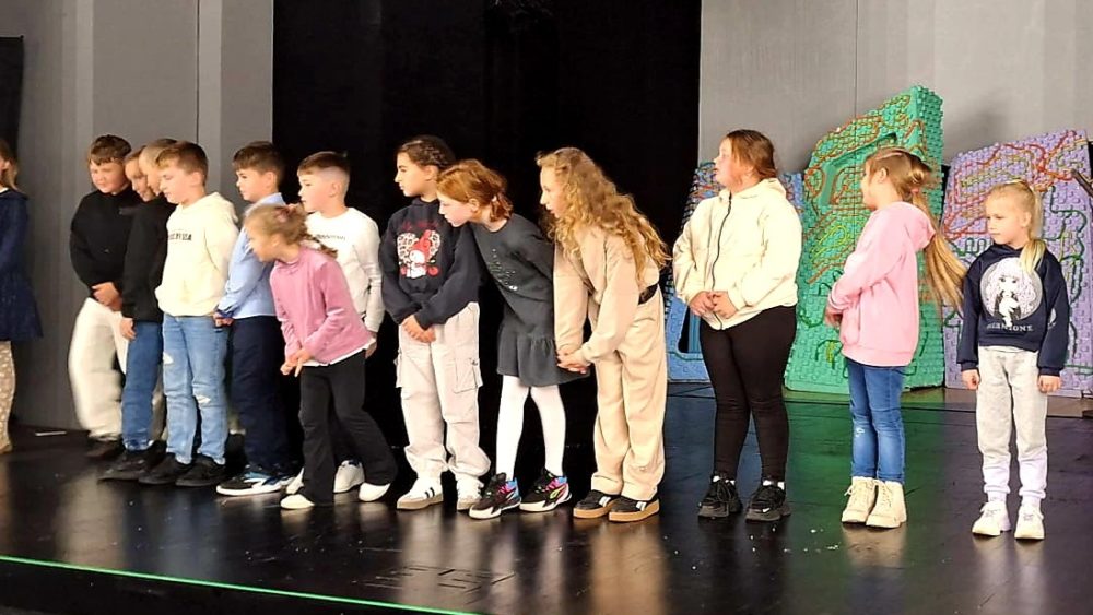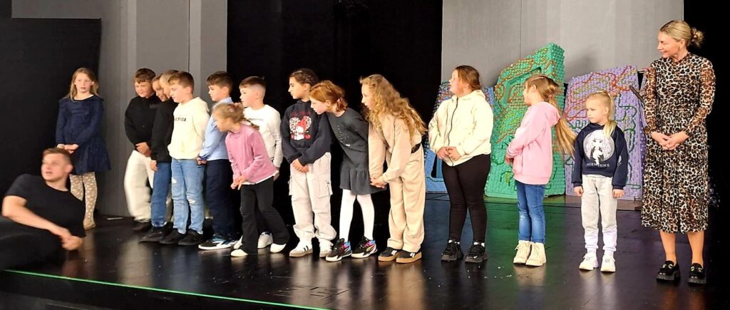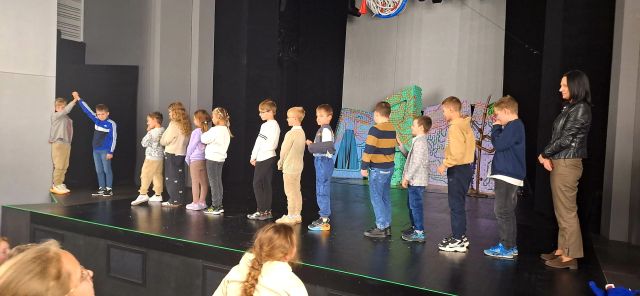 pechowego nosorożca?”. Jest to niezwykle interesujące oraz zabawne przedstawienie o Nosorożcu, który zamiast cieszyć się swoimi atutami, korzystać z nich i rozwijać, skupiał się na tym, czego mu brak. Jego największym marzeniem było to, aby potrafił latać. Barwna scenografia oraz dynamiczna gra aktorów zachwyciły naszych uczniów i wciągnęły ich w fabułę. Spektakl przeniósł dzieci w świat zagadek i przygód, wzbudzając w nich wiele emocji i dostarczając im niezapomnianych wrażeń. Wizyta w teatrze okazała się nie tylko świetną zabawą, ale również inspirującym doświadczeniem artystycznym. Z niecierpliwością czekamy na kolejne takie wydarzenia.