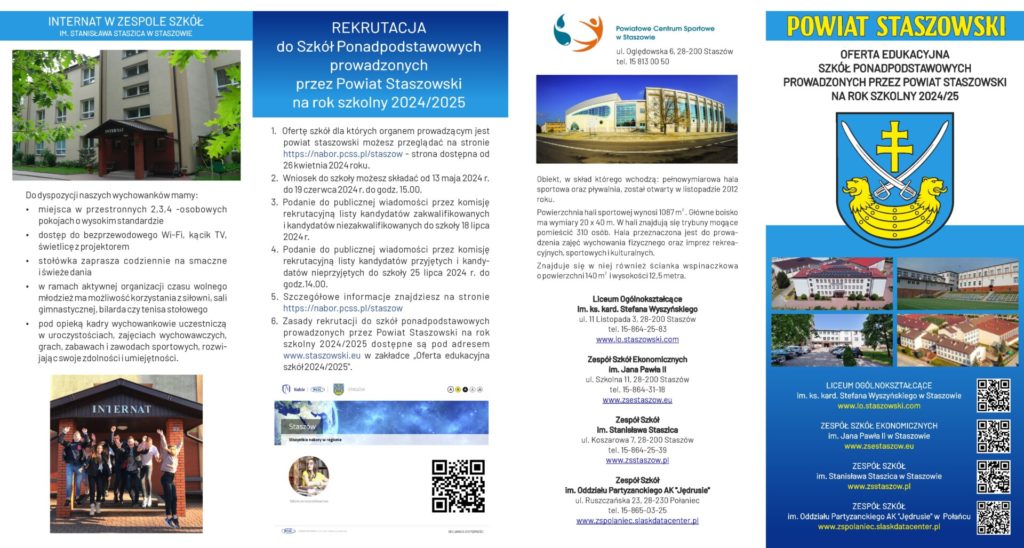 Poniżej do pobrania zasady i terminy rekrutacji do szkół ponadpodstawowych powiatu staszowskiego na rok szkolny 2024/2025